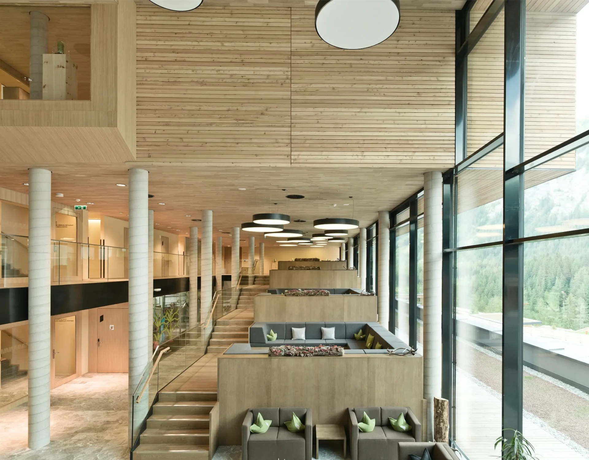 Hier findest du den perfekten Ort für Erholung und Naturverbundenheit: moderne Eleganz trifft auf die Ursprünglichkeit der Alpen. Nach dem Yoga kannst du dich im luxuriösen Alpen-Spa entspannen, am Badeteich die Stille genießen oder die umliegenden Wanderwege erkunden. Ein Kraftort, der dich die Magie der Berge in vollen Zügen spüren lässt.